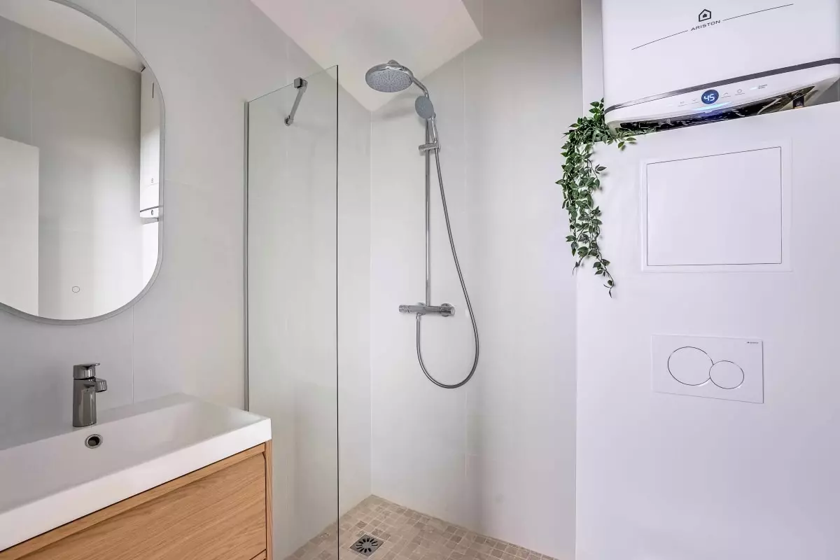 Côté équipements, vous trouverez une salle de bain fonctionnelle ainsi qu'une cuisine équipée d'un micro-onde et d'une machine à café Nespresso pour vos réveils en douceur. Un sèche-cheveux est également mis à votre disposition pour voyager plus léger.