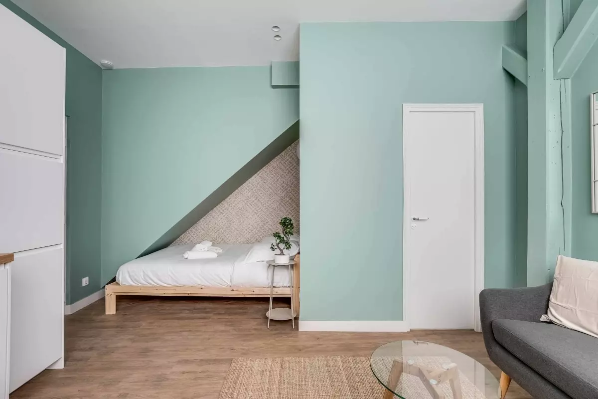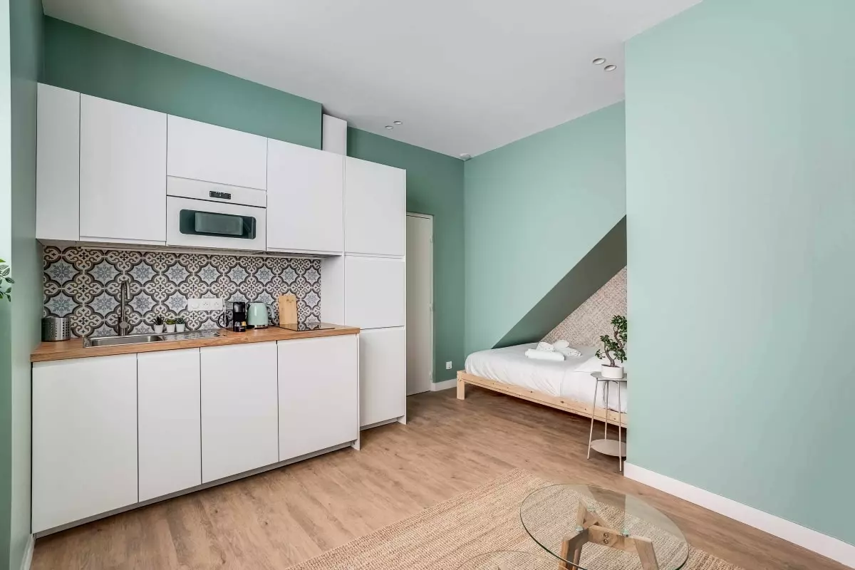 Ce beau studio en rez de chaussée à Paris est idéal pour un séjour en couple ou en solo, alliant parfaitement l'authenticité d'une ruelle pavée et le confort moderne.