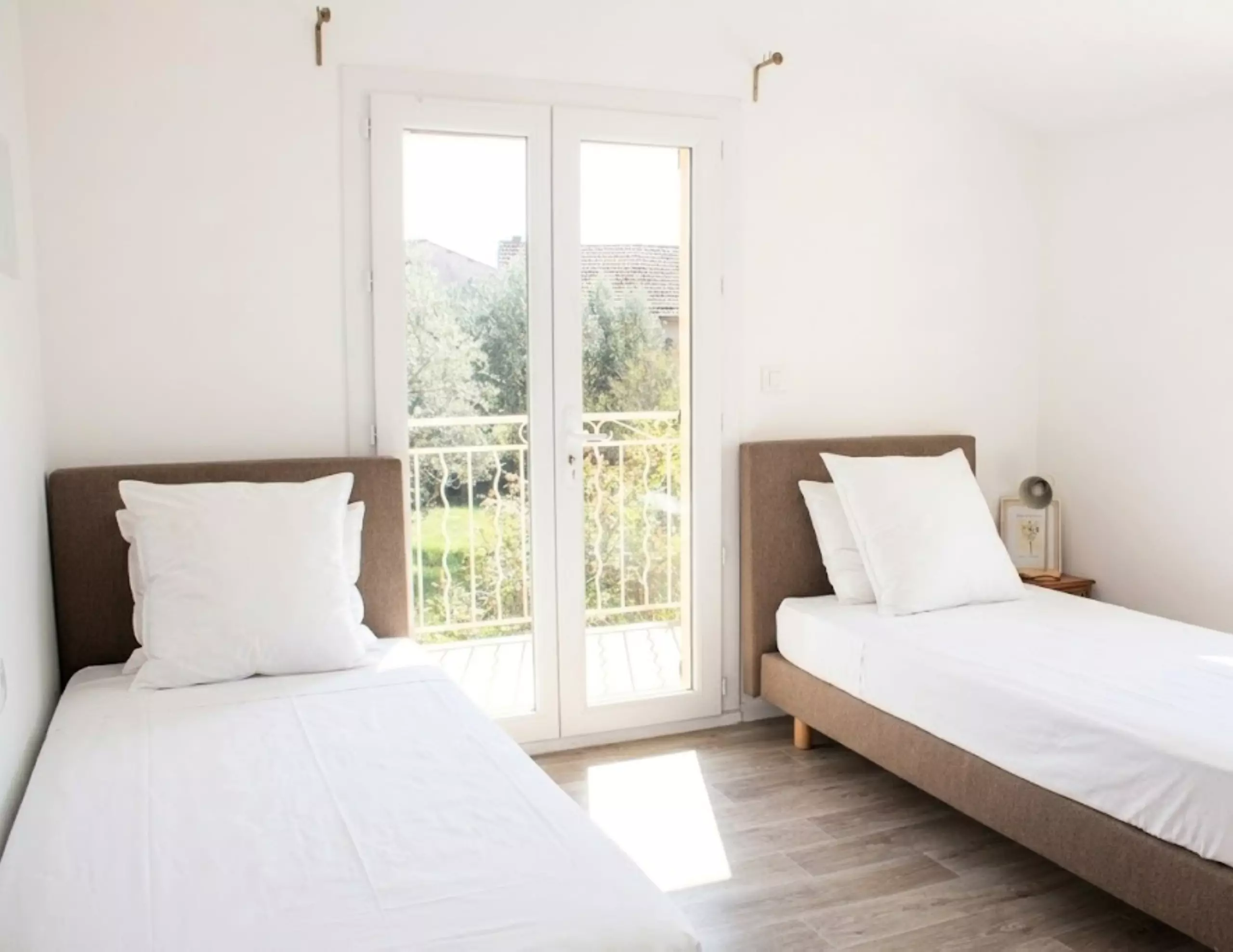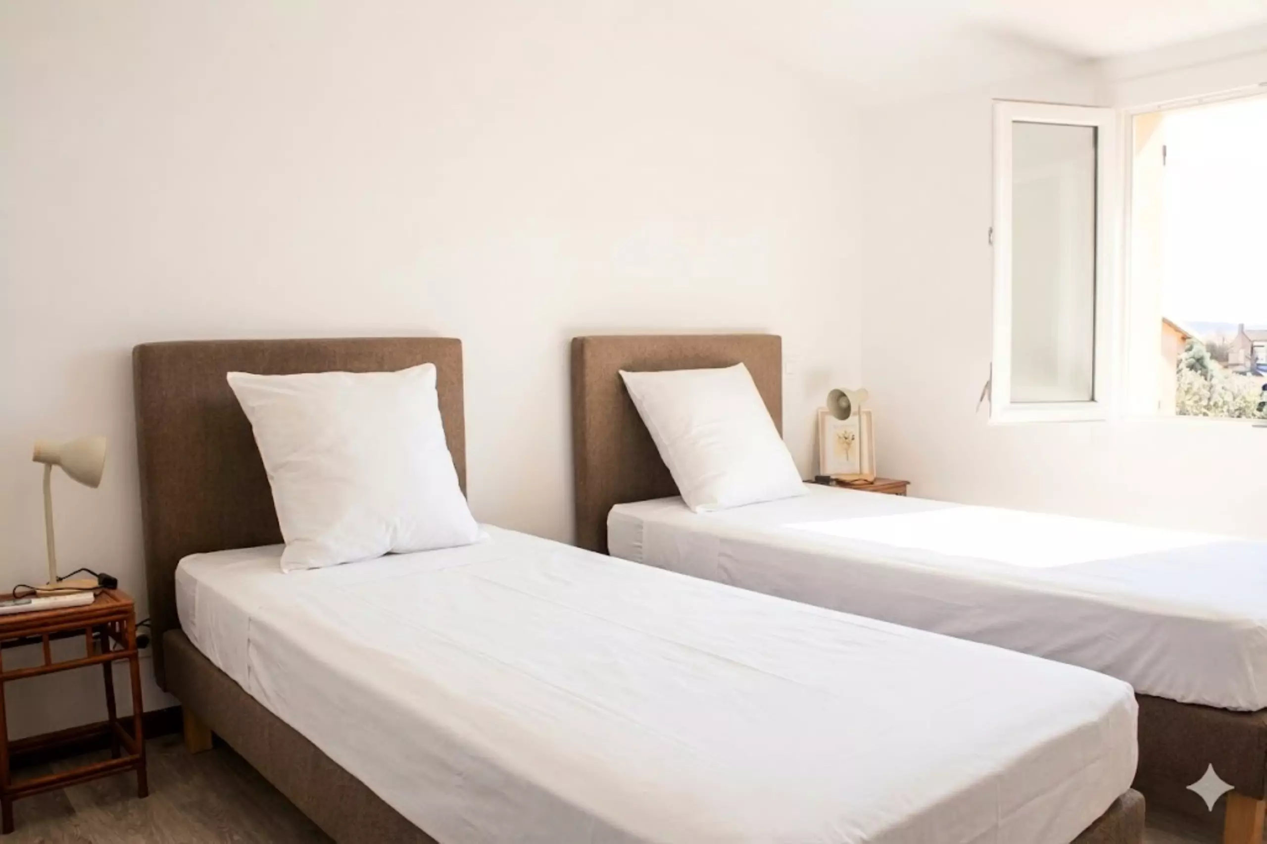 La villa dispose de 3 chambres accueillantes avec 5 lits au total : 1 lit queen-size et 4 lits individuels. Chaque espace a été pensé pour votre bien-être, avec une climatisation dans tout le logement et une literie de qualité
