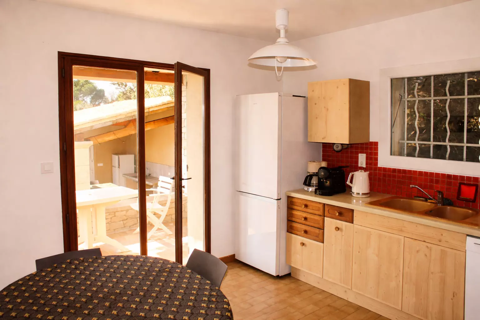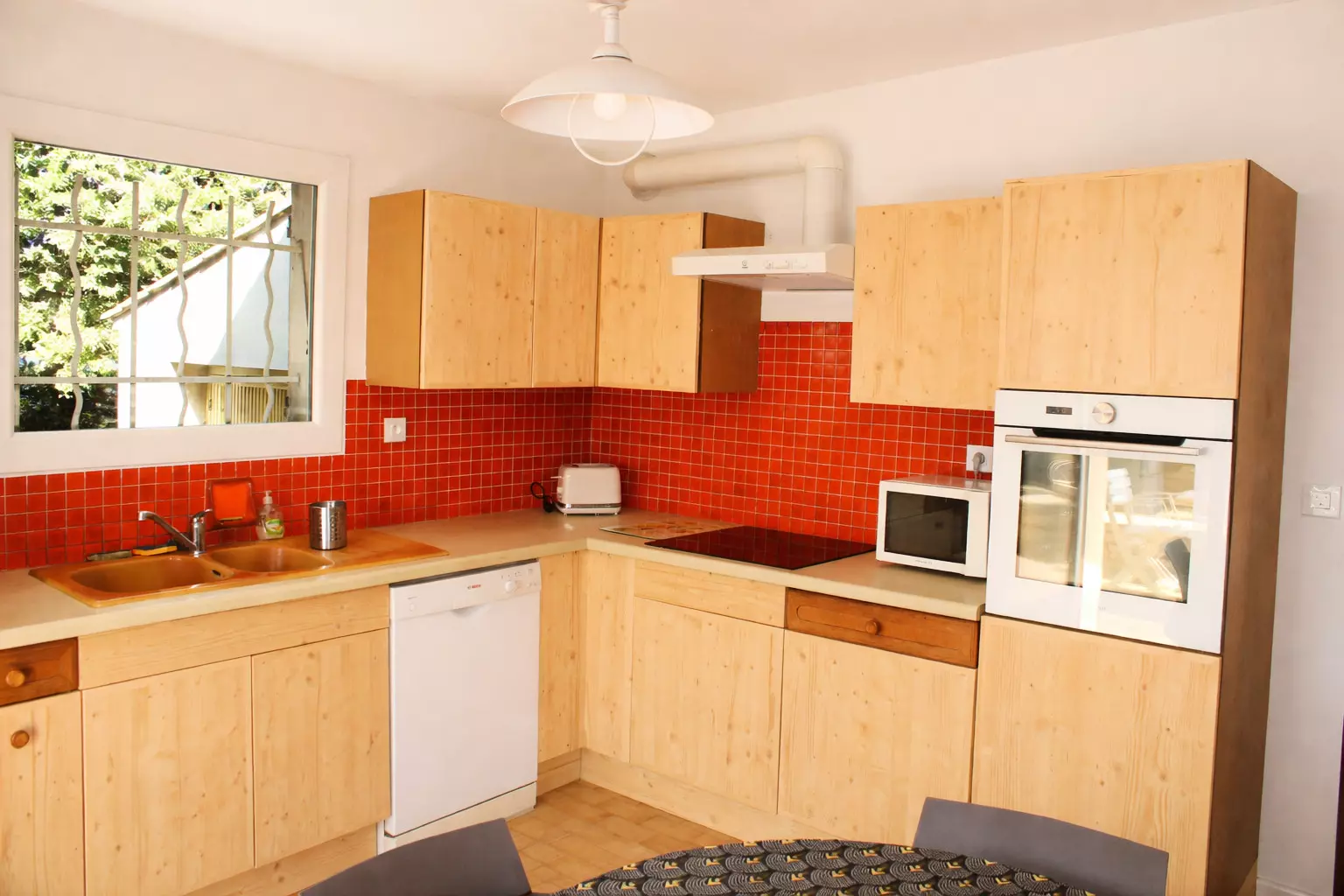 La cuisine indépendante est entièrement équipée : réfrigérateur, congélateur, four, micro-ondes, lave-vaisselle, cafetière, grille-pain, bouilloire, presse-agrumes et tous les ustensiles nécessaires. Vous trouverez également une lave-linge, une télévision écran plat et une connexion WiFi pour rester connecté si vous le souhaitez