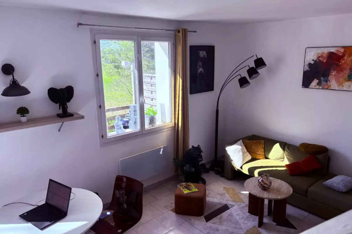 Évadez-vous dans ce cocon de 45 m² au calme de la campagne aixoise, avec terrasse et parking, à seulement 10 minutes du centre d'Aix-en-Provence.