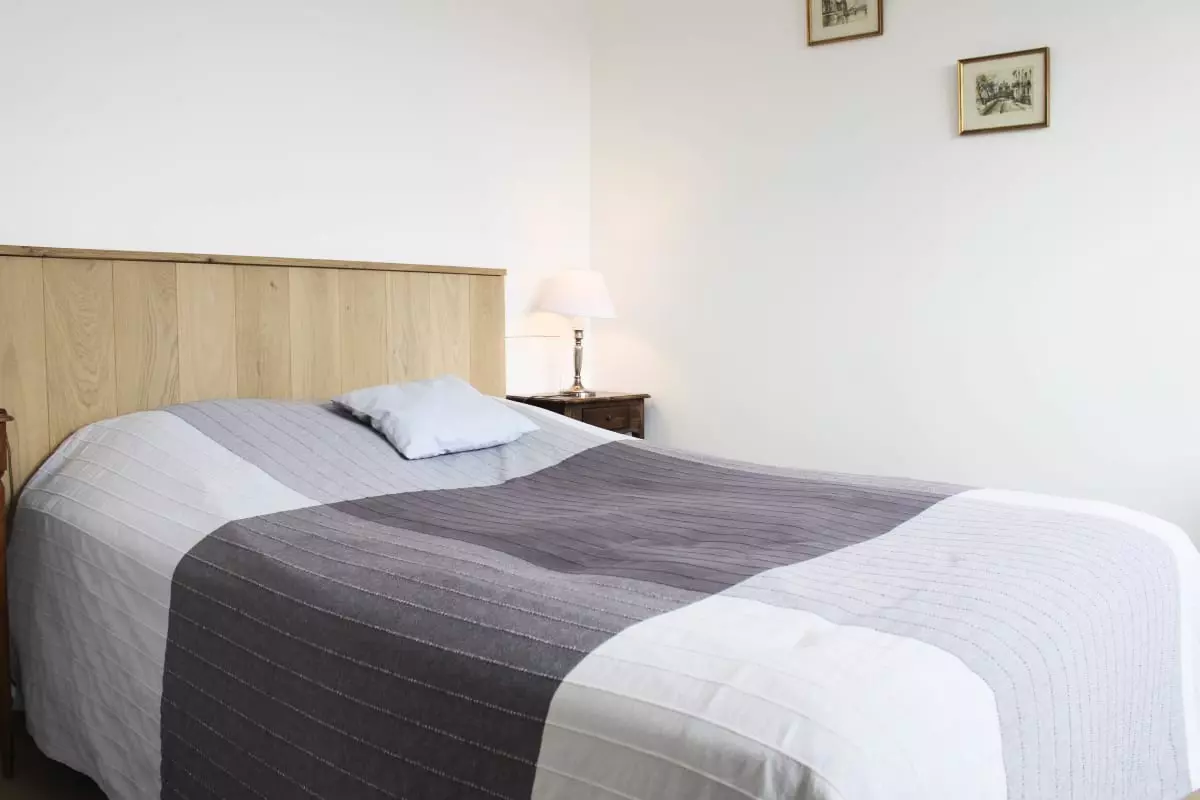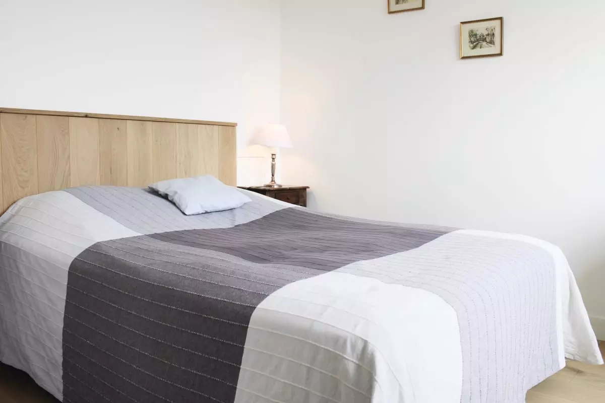 La chambre principale dispose d’un lit double 140x190, parfait pour des nuits confortables après vos journées de découverte ou de travail.