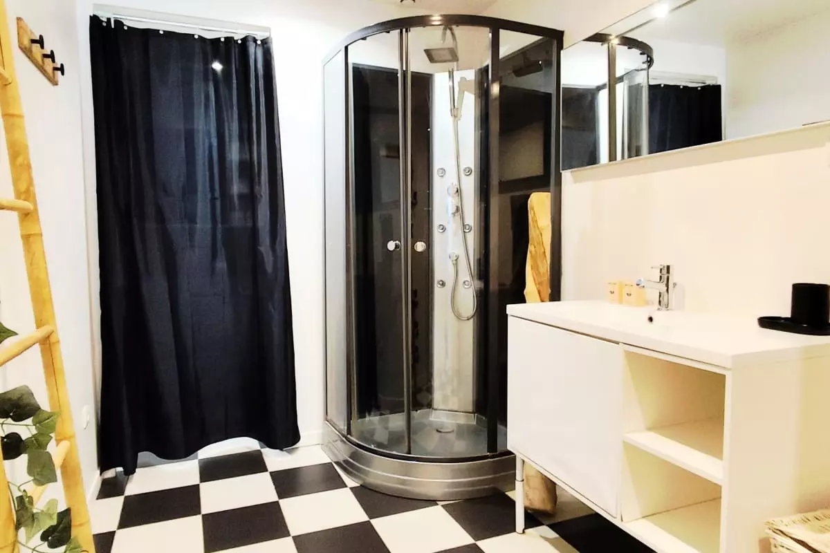 Le studio s’organise autour d’une pièce de vie chaleureuse, agrémentée d’un canapé convertible de qualité (140x200) qui se transforme en lit douillet en un clin d’œil. La cuisine parfaitement fonctionnelle est équipée (four, micro-ondes, machine Nespresso, appareil à raclette) pour préparer vos repas comme à la maison. Une salle de bain moderne et des draps & serviettes de qualité hôtelière complètent ce tableau pour votre plus grand confort.