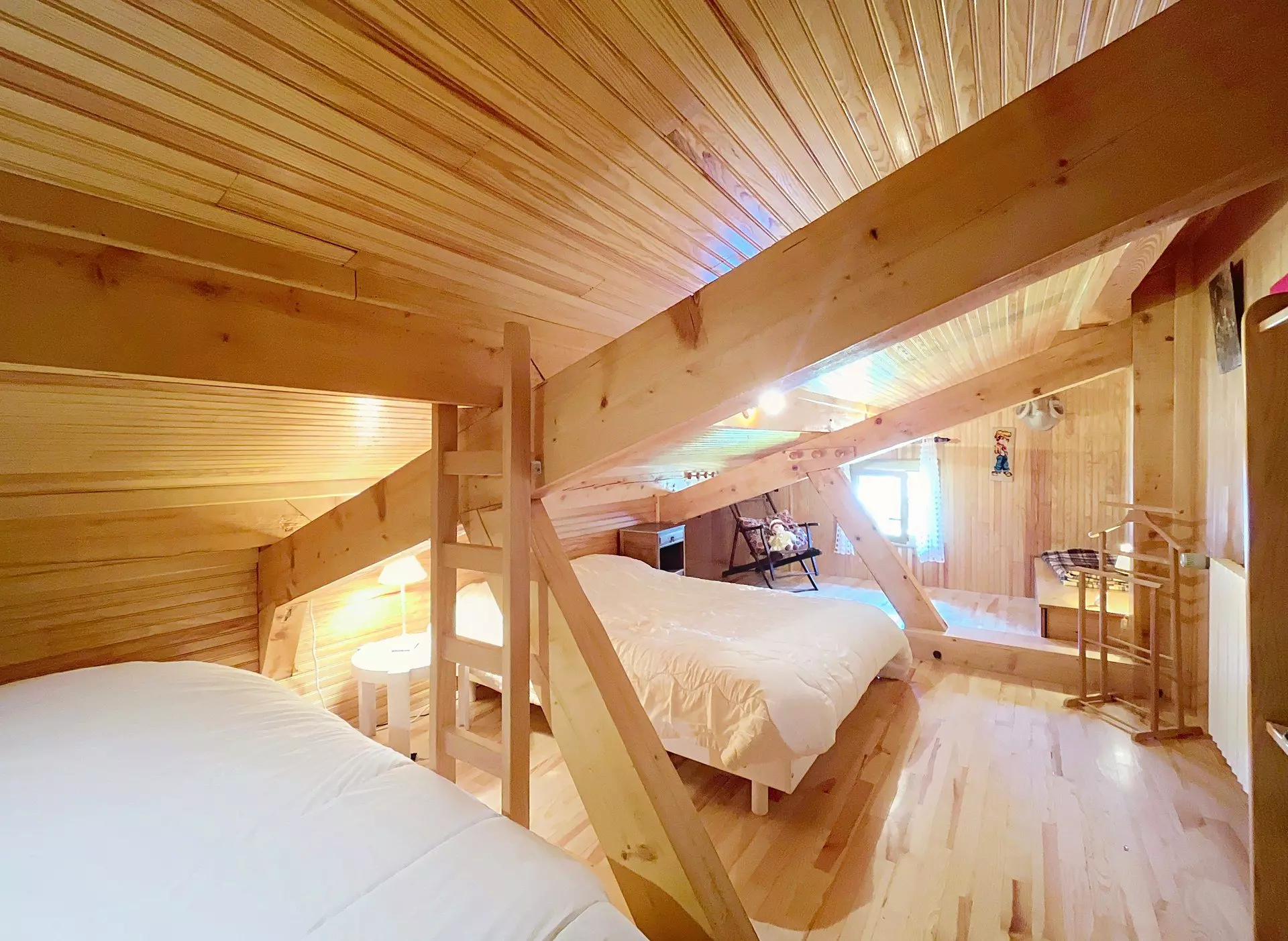 « Le repère des Lutins » : 1 grande chambre sous pente, ambiance refuge avec 1 lit double (140) + 2 lits simples.