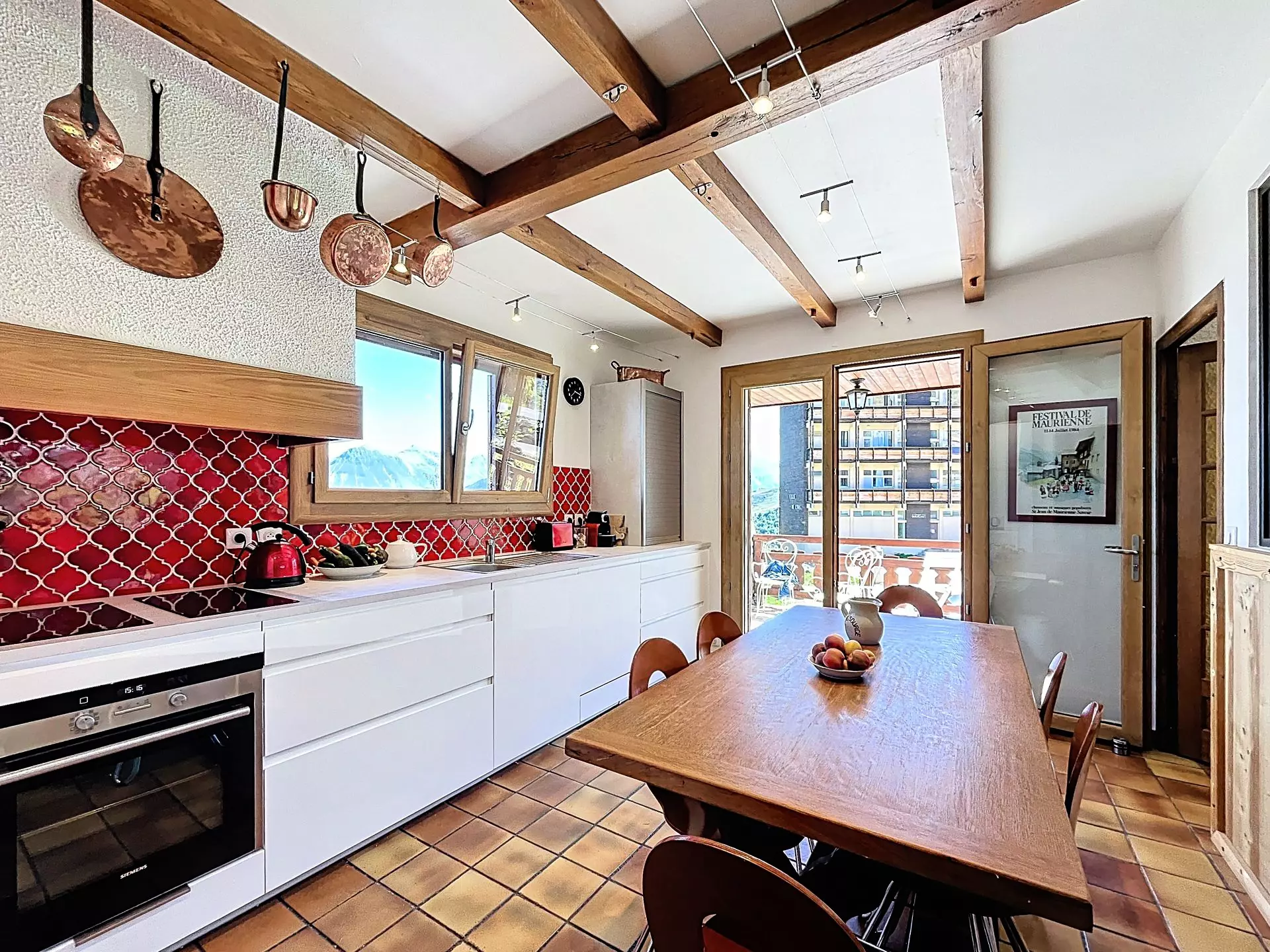 Cuisine indépendante avec verrière, entièrement rénovée et équipée : réfrigérateur, plaques 4 feux, micro-ondes, four traditionnel, cafetière, lave-vaisselle, bouilloire, grille-pain Sans oublier les indispensables appareils à raclette et fondue pour vos soirées gourmandes au coin du feu.