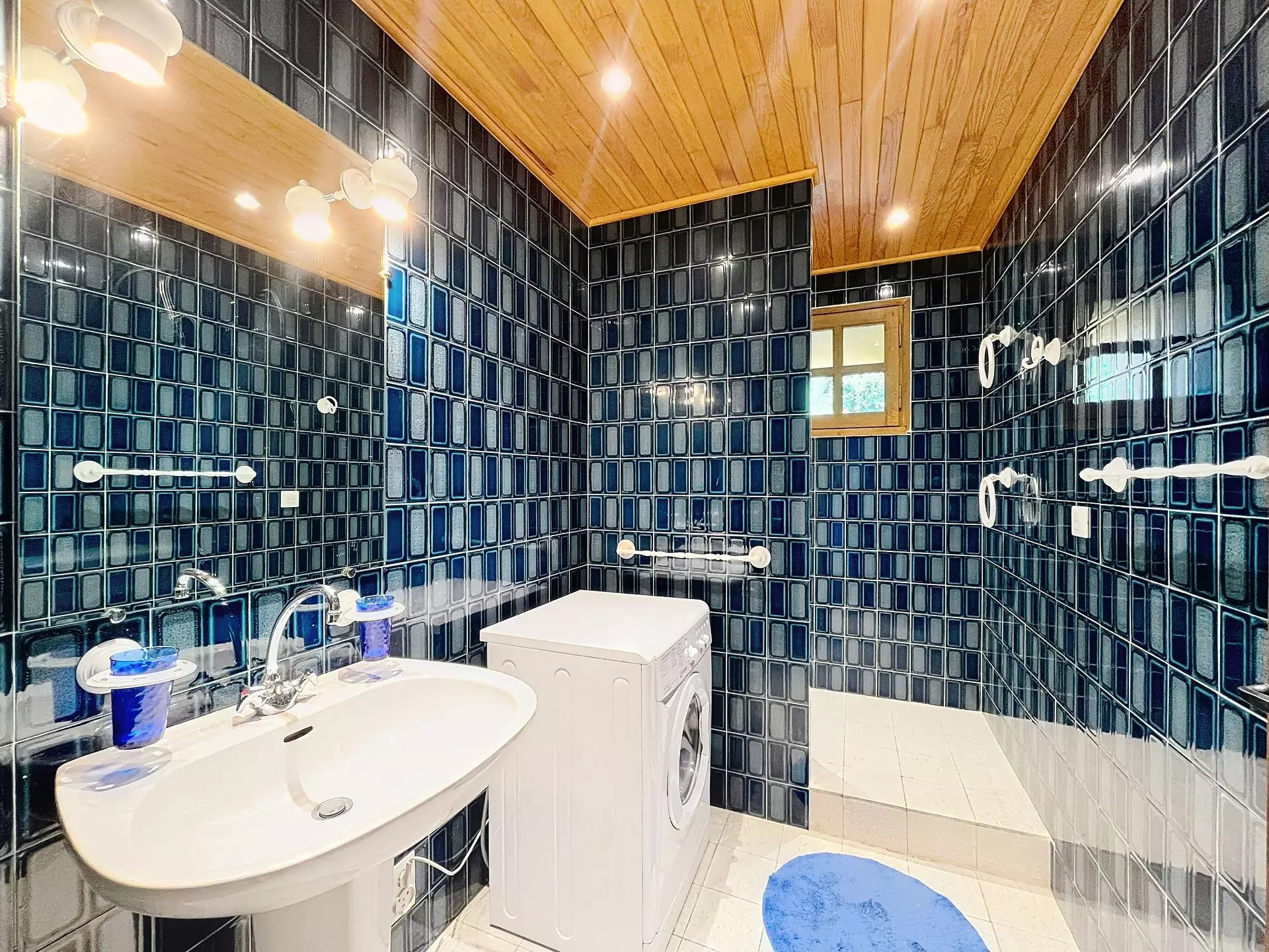 1 salle d’eau avec vasque, douche à l’italienne et lave-linge.