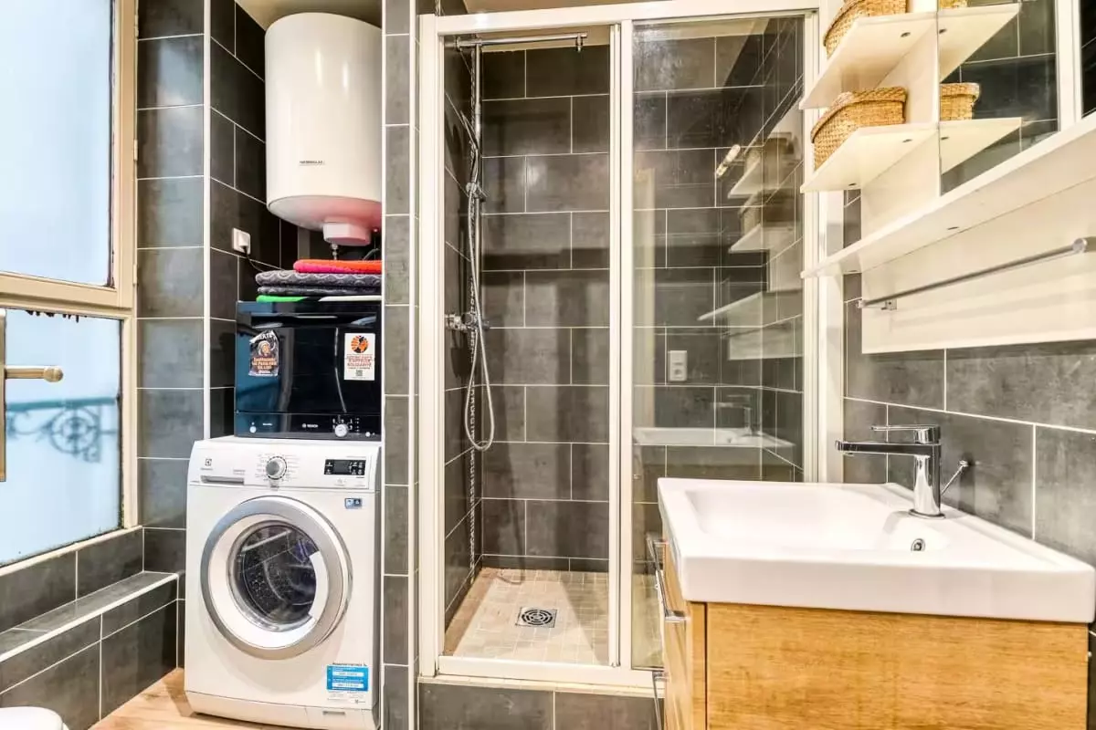 La salle de bain est équipée d’une douche, d'un lave-linge et d'un sèche-linge, et de tout le nécessaire pour votre confort. La cuisine entièrement équipée comprend un four, un micro-ondes, un lave-vaisselle. Vous trouverez également un fer à repasser et une machine à café à grains de qualité luxe. Le Wifi est disponible dans tout le logement.