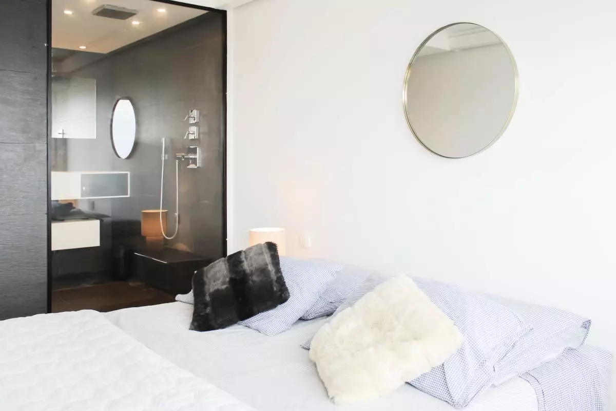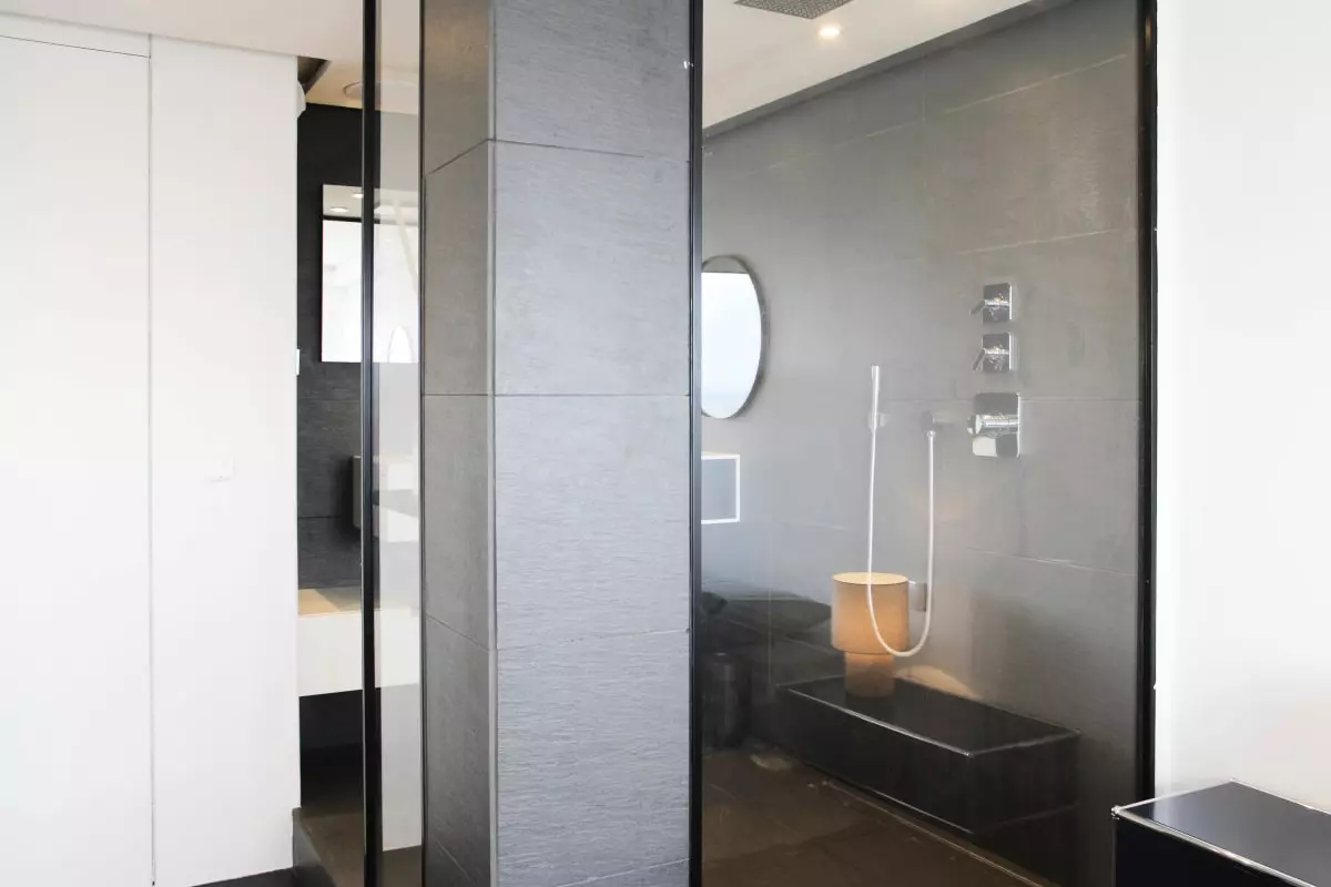La chambre principale avec sa salle de bain ouverte, son balcon et sa vue sur Paris dispose d'une literie king size neuve pour des nuits incroyables.