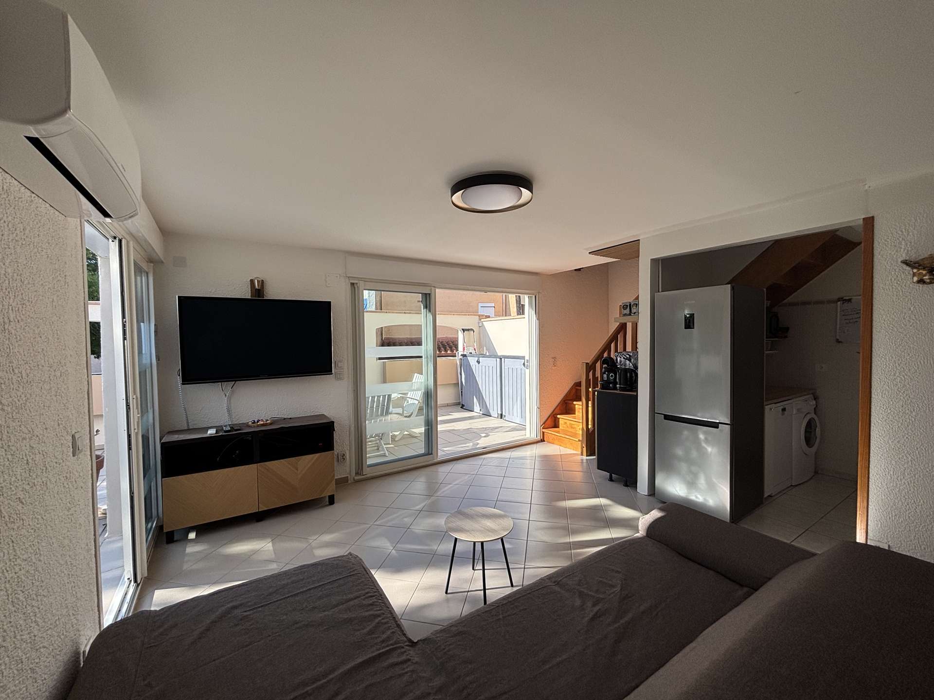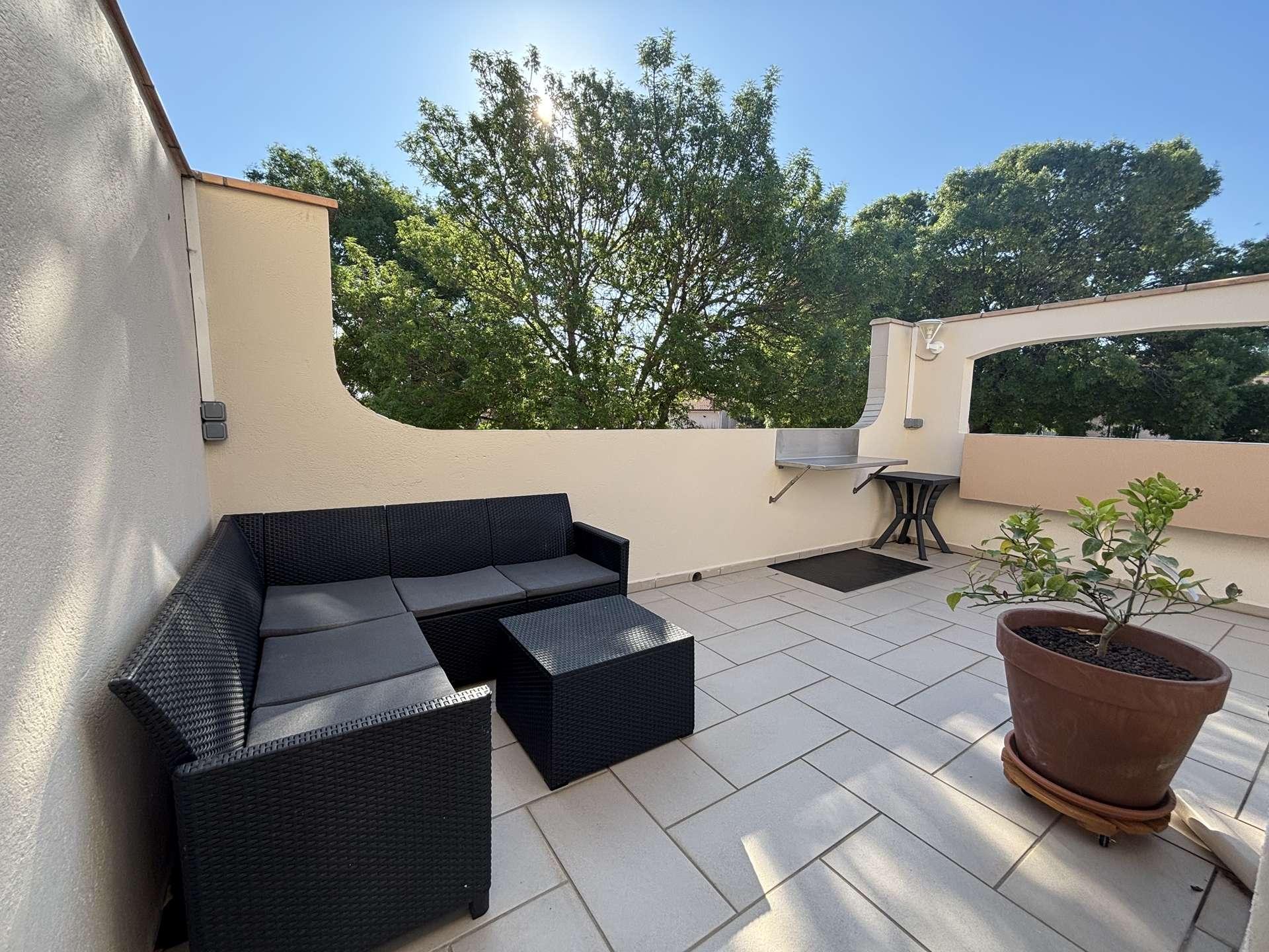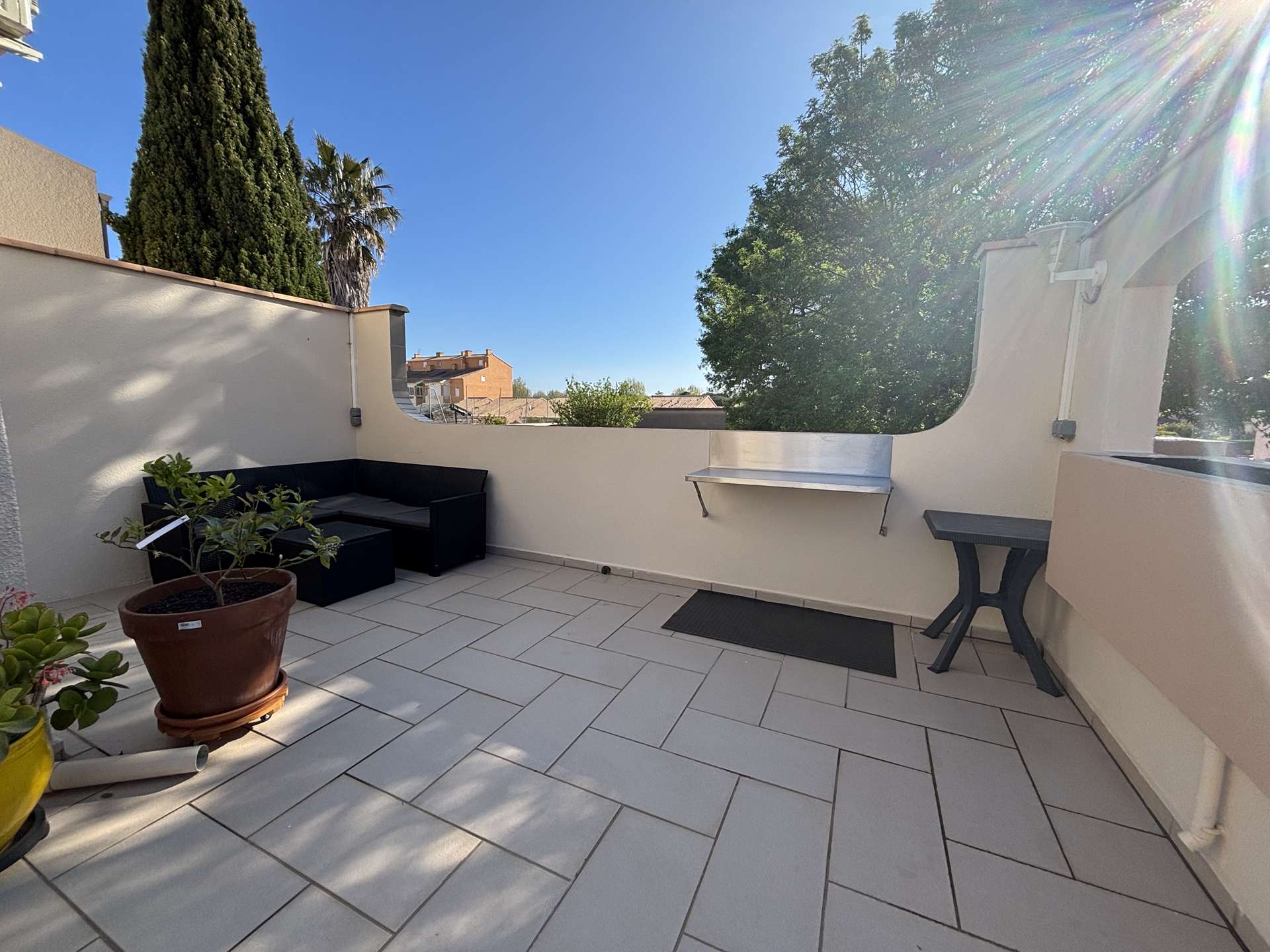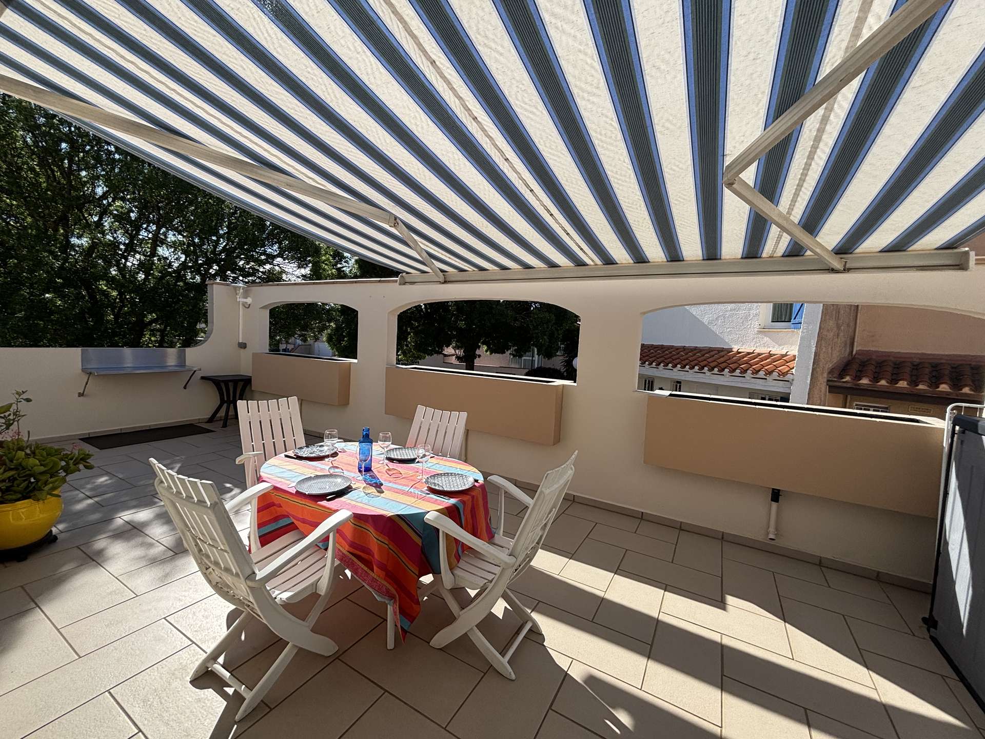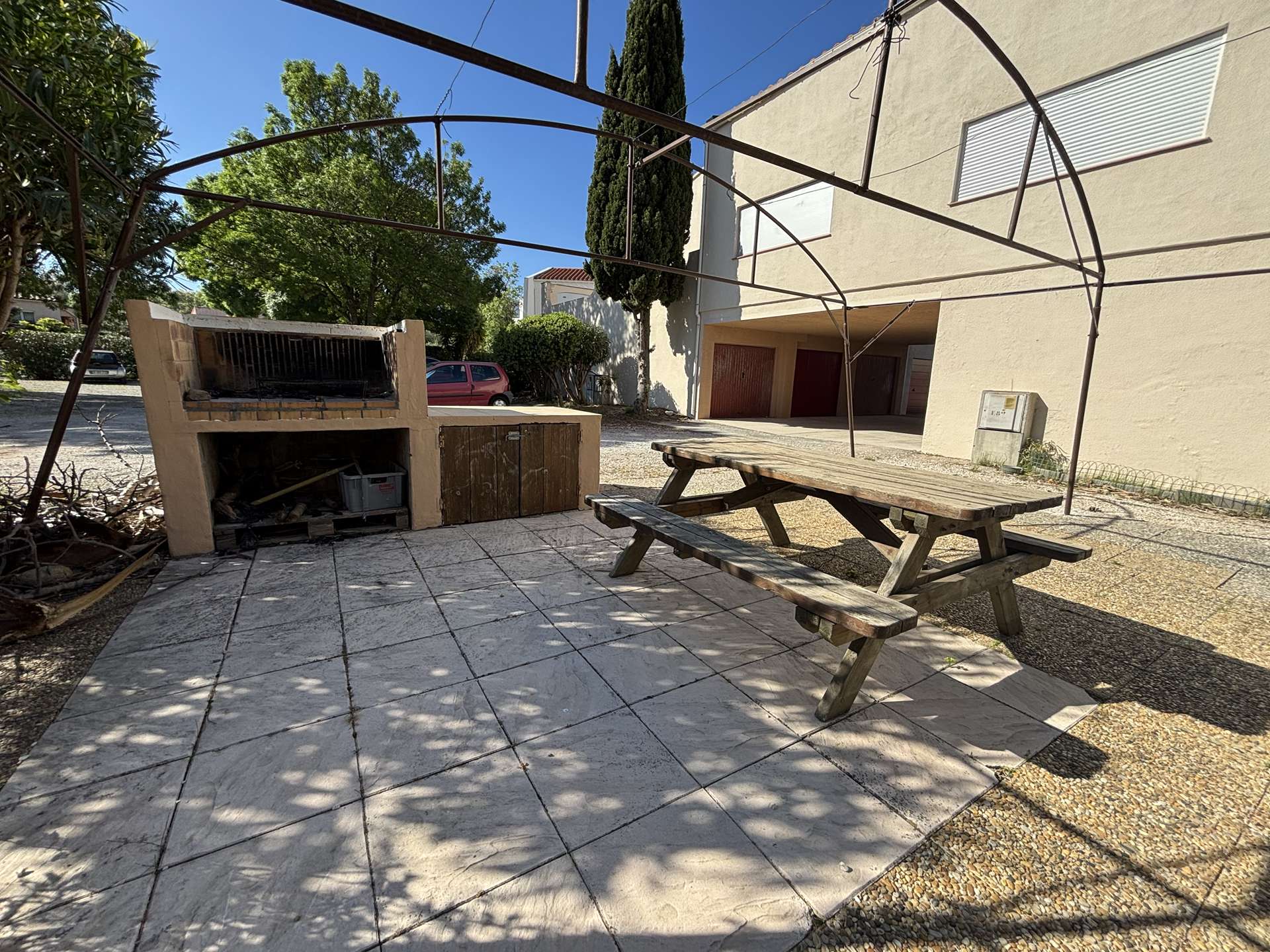 Vous apprécierez la grande terrasse ensoleillée avec salon de jardin, parfaite pour partager un repas, se détendre ou profiter des douces soirées du Sud. Un accès piéton par portillon permet également de rejoindre facilement la plage à pied.