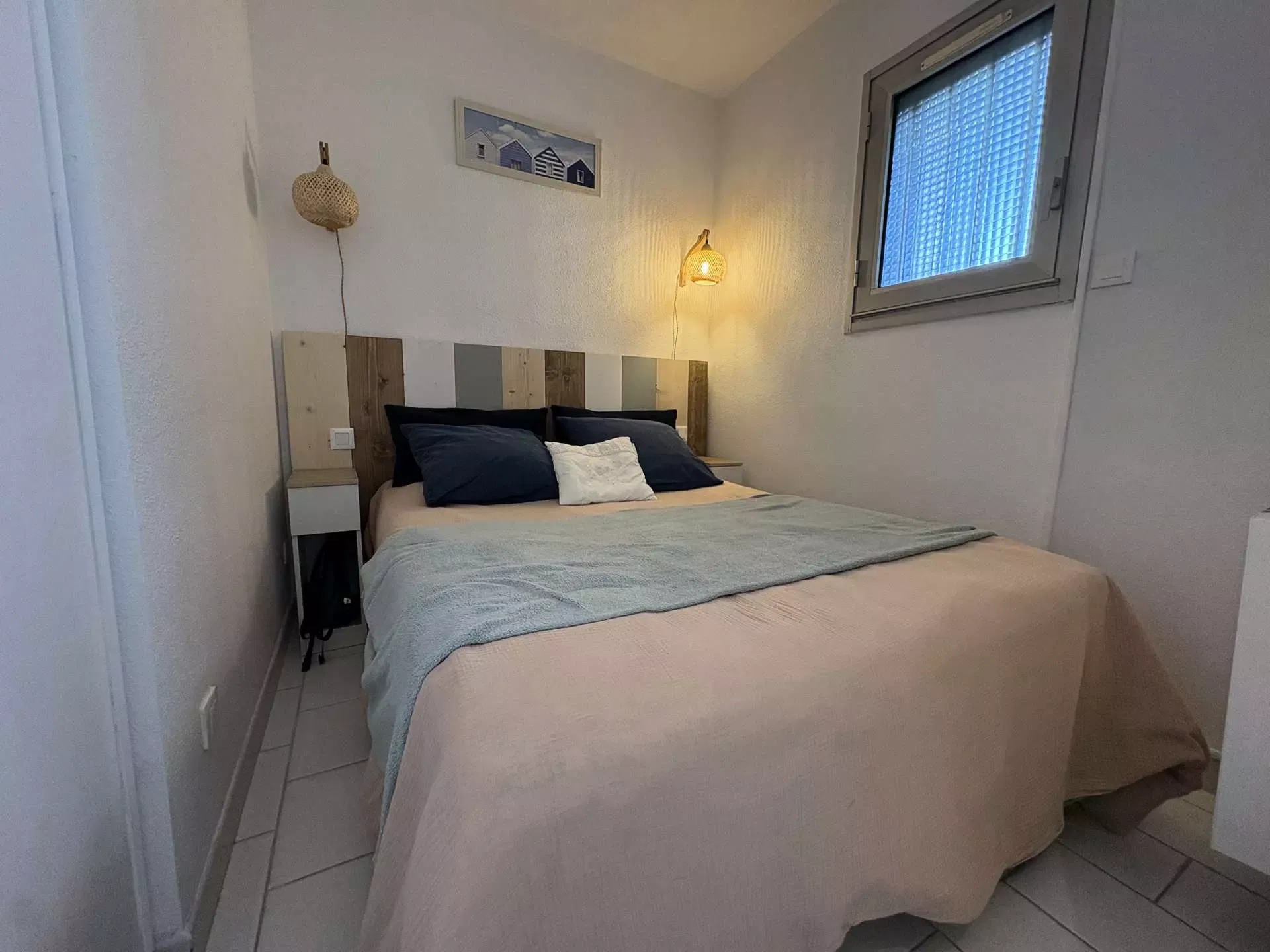 Cet appartement récemment rénové d'une surface d'environ 26 m2, au premier étage vous propose : une entrée avec armoire de rangement, une chambre avec un lit double, un séjour avec deux couchages simples (chauffeuse avec surmatelas - idéal pour 2 enfants), une cuisine ouverte, une salle d'eau et un wc.