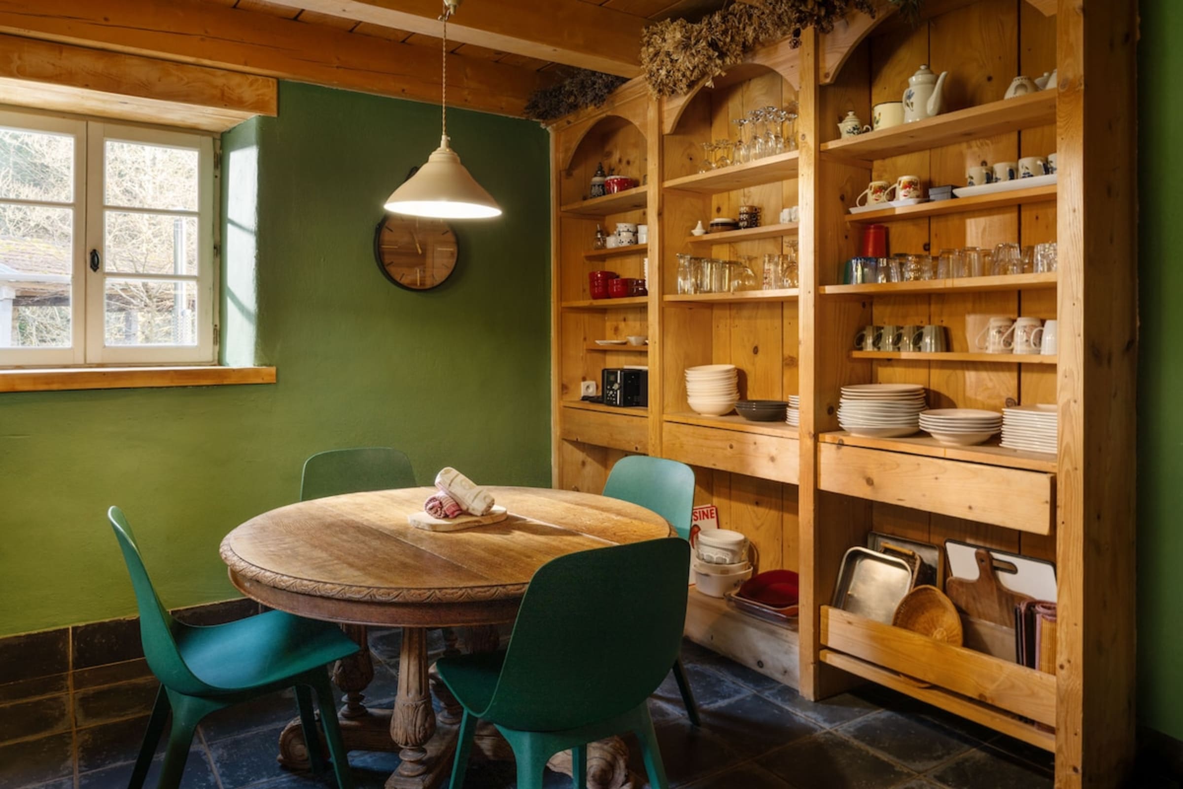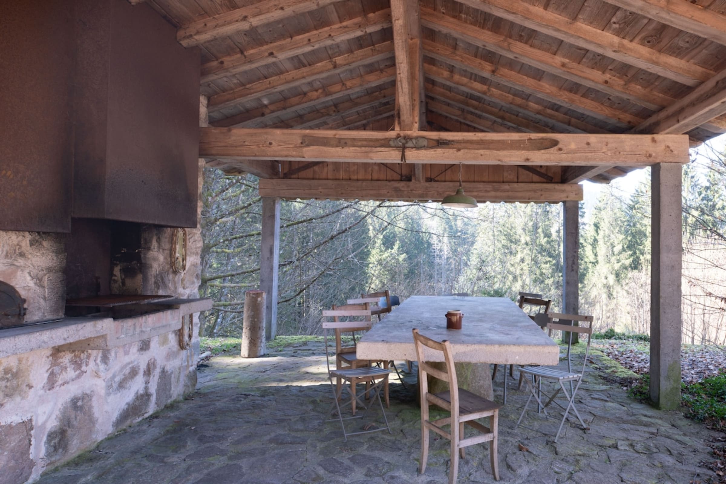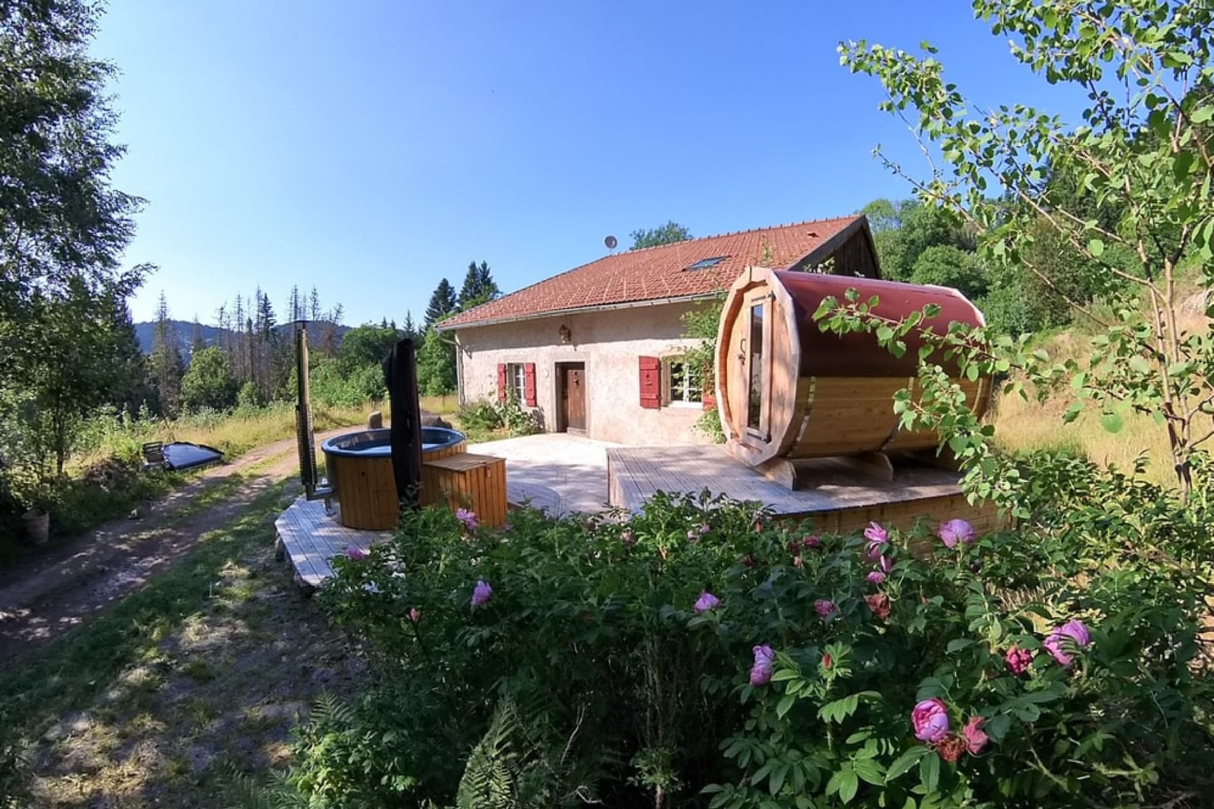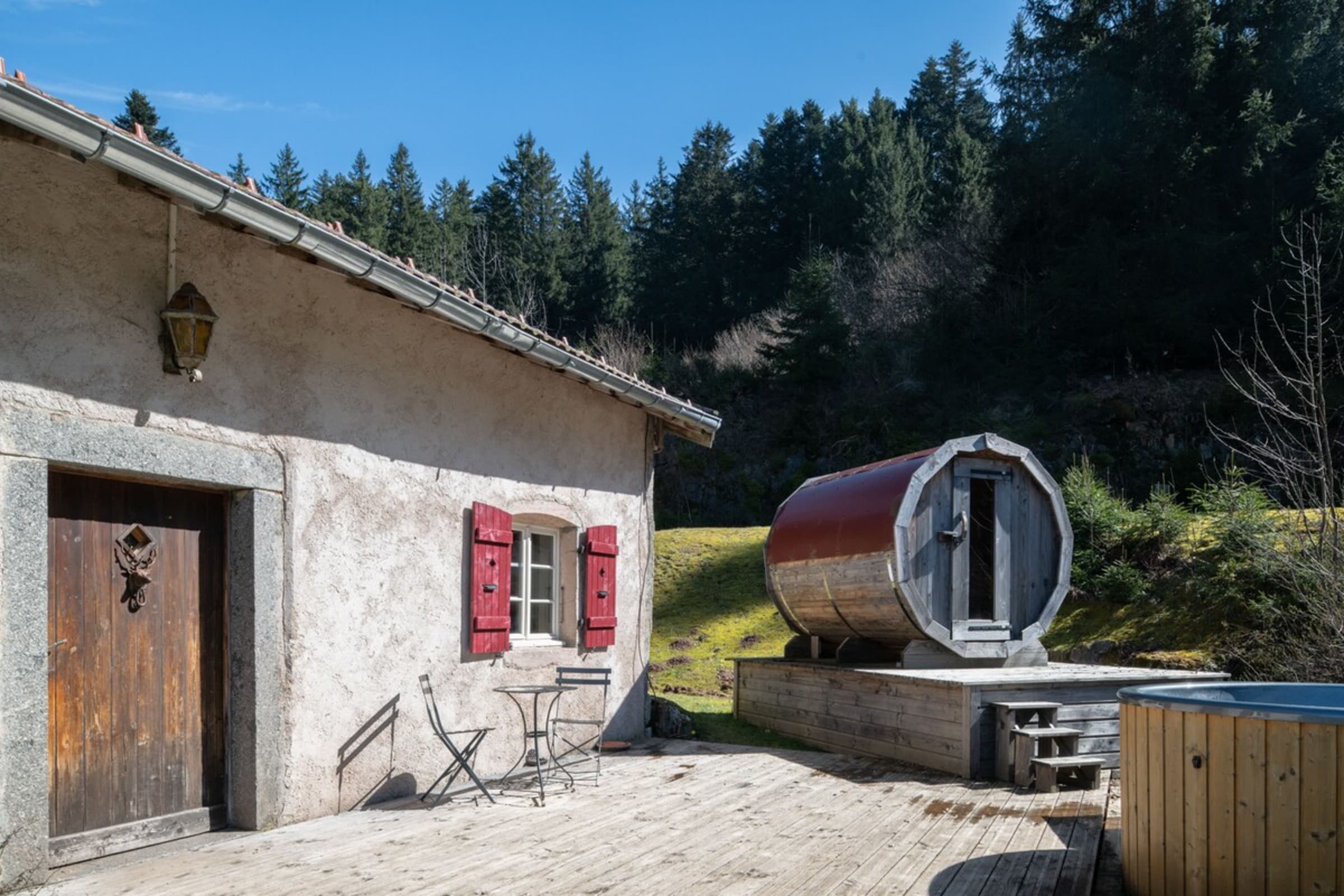 À l’extérieur : profitez d’un bain nordique et d’un sauna extérieur pour un moment de détente absolue au cœur de la forêt. Coin repas avec barbecue et espaces verts complètent ce cadre idyllique.
