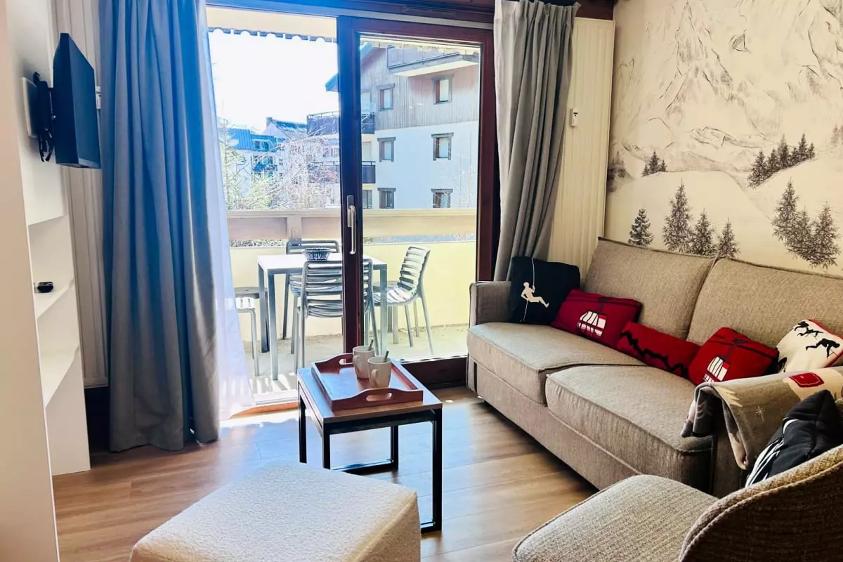 Appartement chaleureux de 45 m² avec balcon et accès spa, idéalement situé au cœur de Chamonix, à deux pas des gares et des sites touristiques.