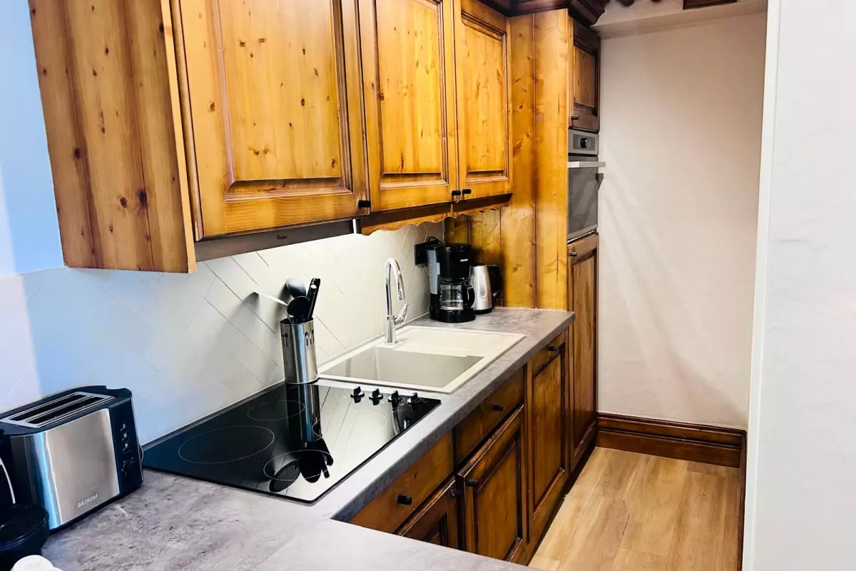 La cuisine ouverte est entièrement équipée avec des plaques de cuisson, un réfrigérateur, un four, un micro-onde et un lave-vaisselle. Pour vos soirées gourmandes, un appareil à raclette est à votre disposition, ainsi qu'une cafetière à filtre et une machine Nespresso pour vos petits-déjeuners.