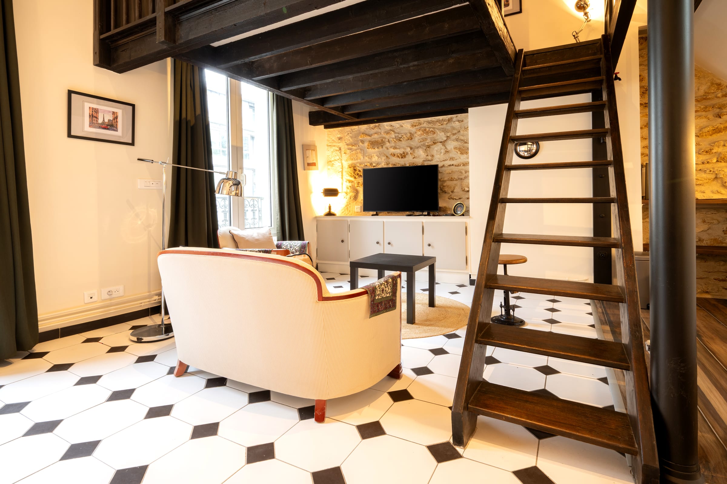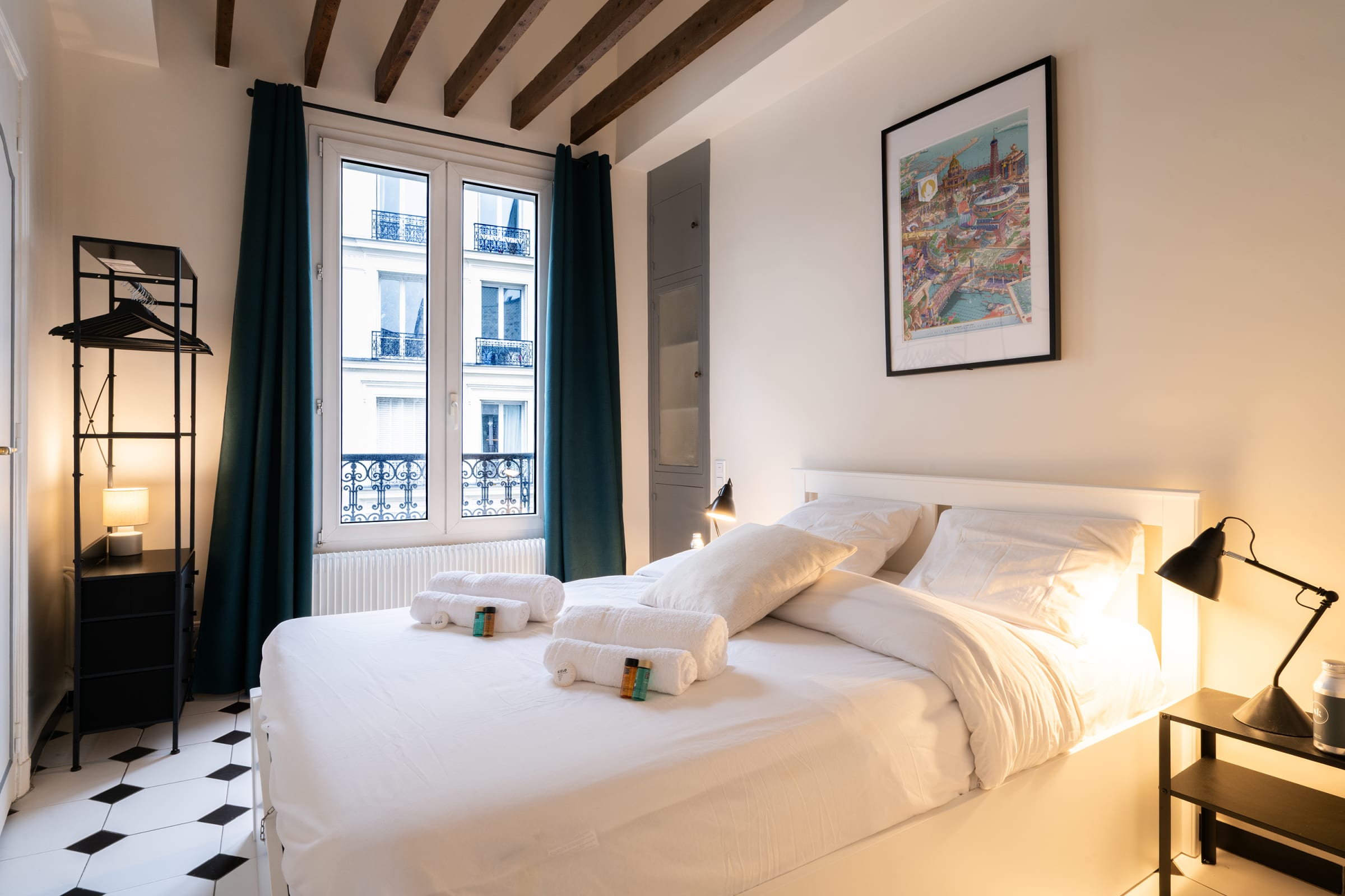 L'appartement se trouve à quelques pas de la célèbre Rue de la Roquette, au cœur d'un quartier animé mais pourtant calme, idéalement situé entre le Marais et la Bastille. Vous pourrez aisément rejoindre à pied la Place des Vosges, flâner dans le charmant quartier du Marais, ou assister à un spectacle à l'Opéra Bastille. Pour vos pauses gourmandes, ne manquez pas la boulangerie "Aux deux anges" et le restaurant "Superbao". Profitez des nombreux bars et animations de la rue de Lappe pour des soirées animées.