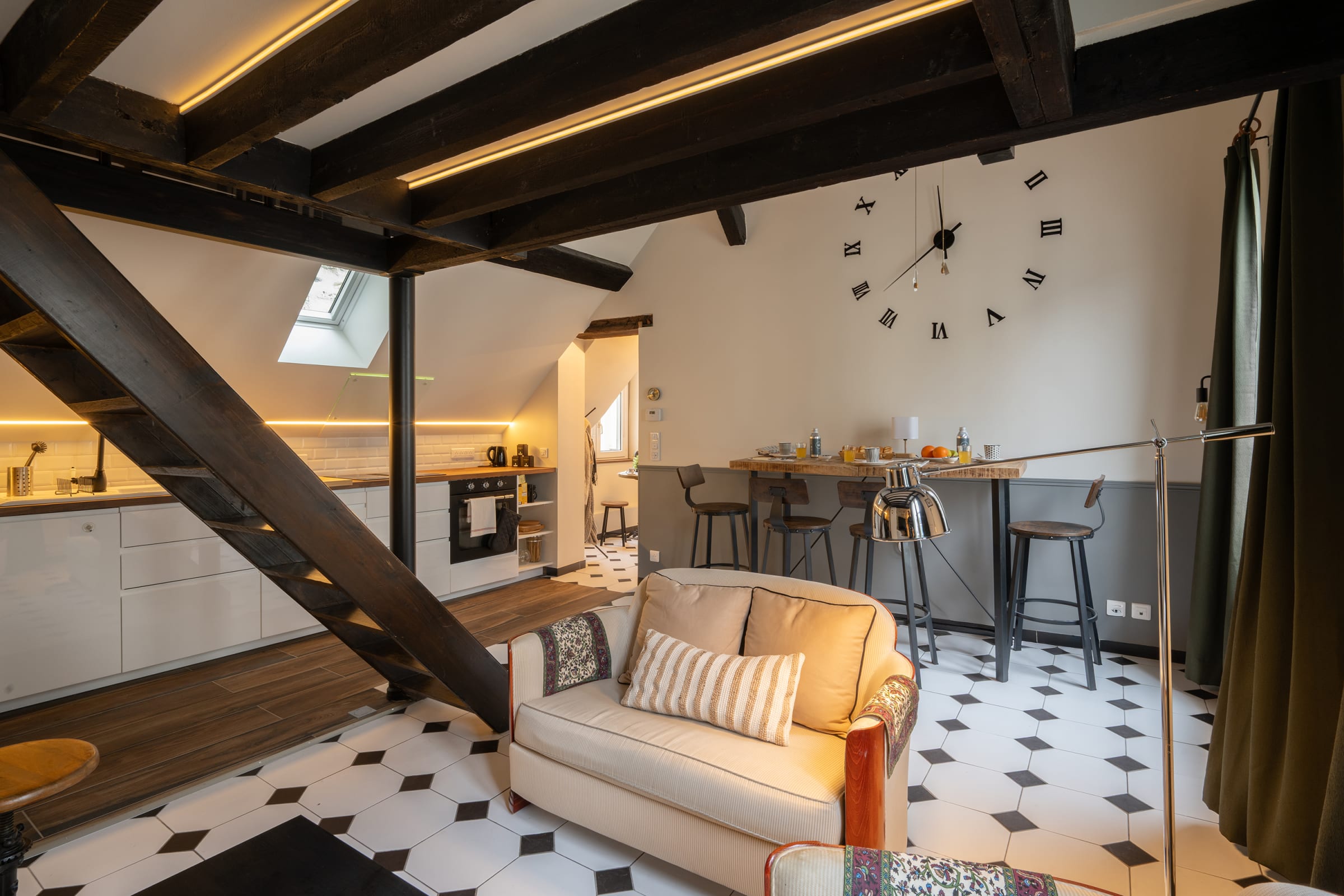 Découvrez ce charmant appartement situé au troisième étage d'un immeuble sans ascenseur, rénové en 2025, qui allie à la perfection de l'ancien avec le confort moderne, grâce à ses pierres et poutres apparentes et sa belle hauteur sous plafond.