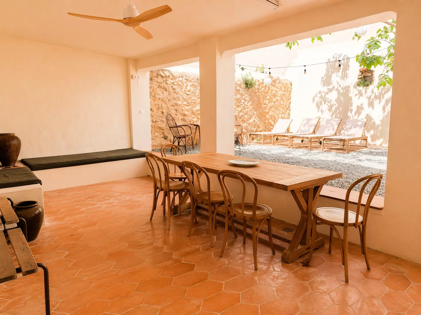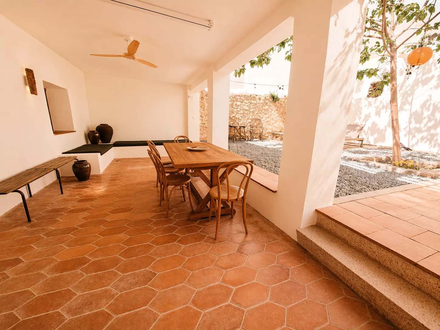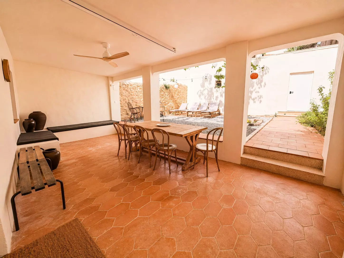 Elle dispose de jardin, mobilier de jardin, clôture, terrasse, lave-linge, climatisation dans le salon, 3 ventilateurs.