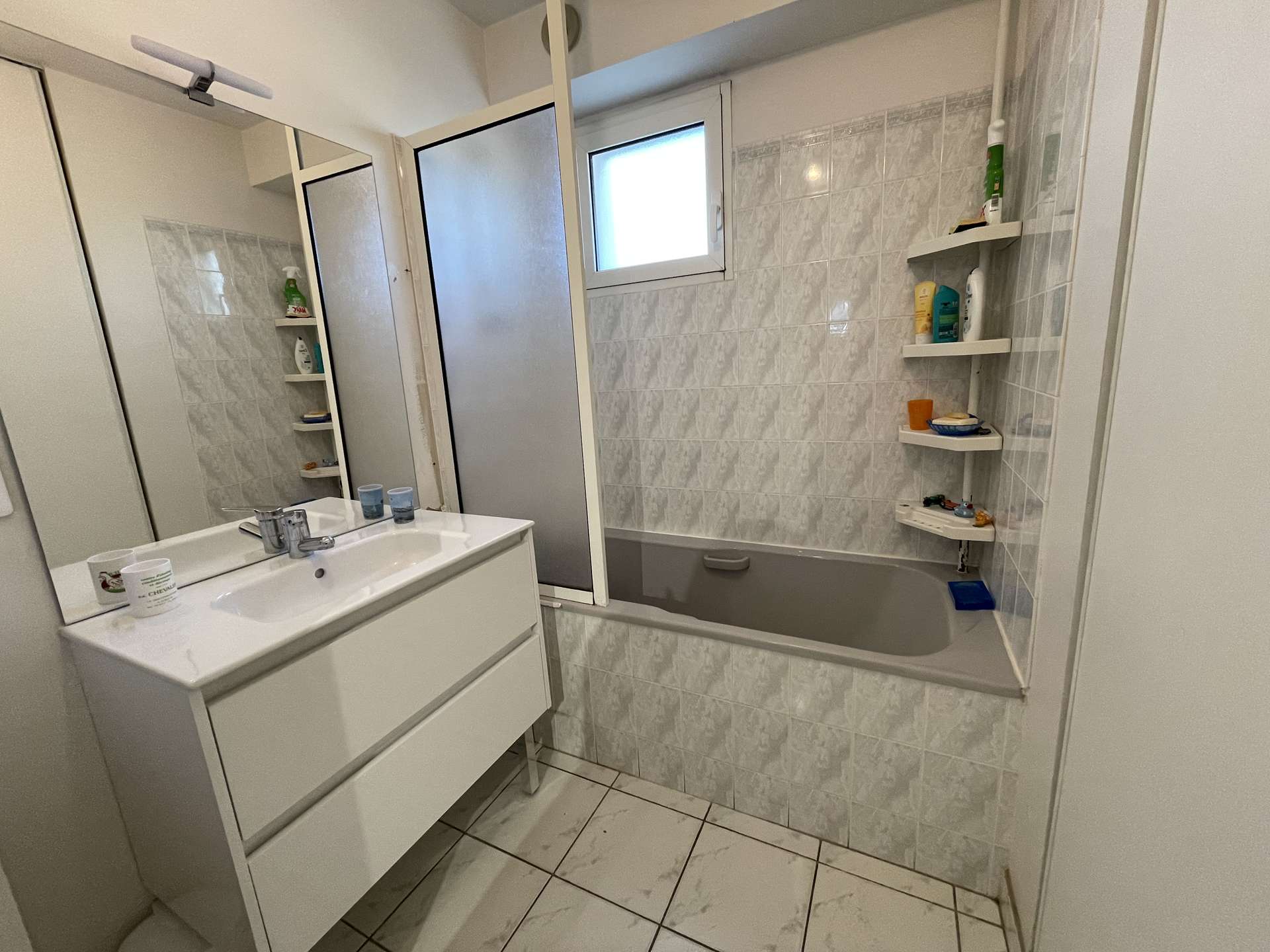 - 1 salle de bain avec baignoire