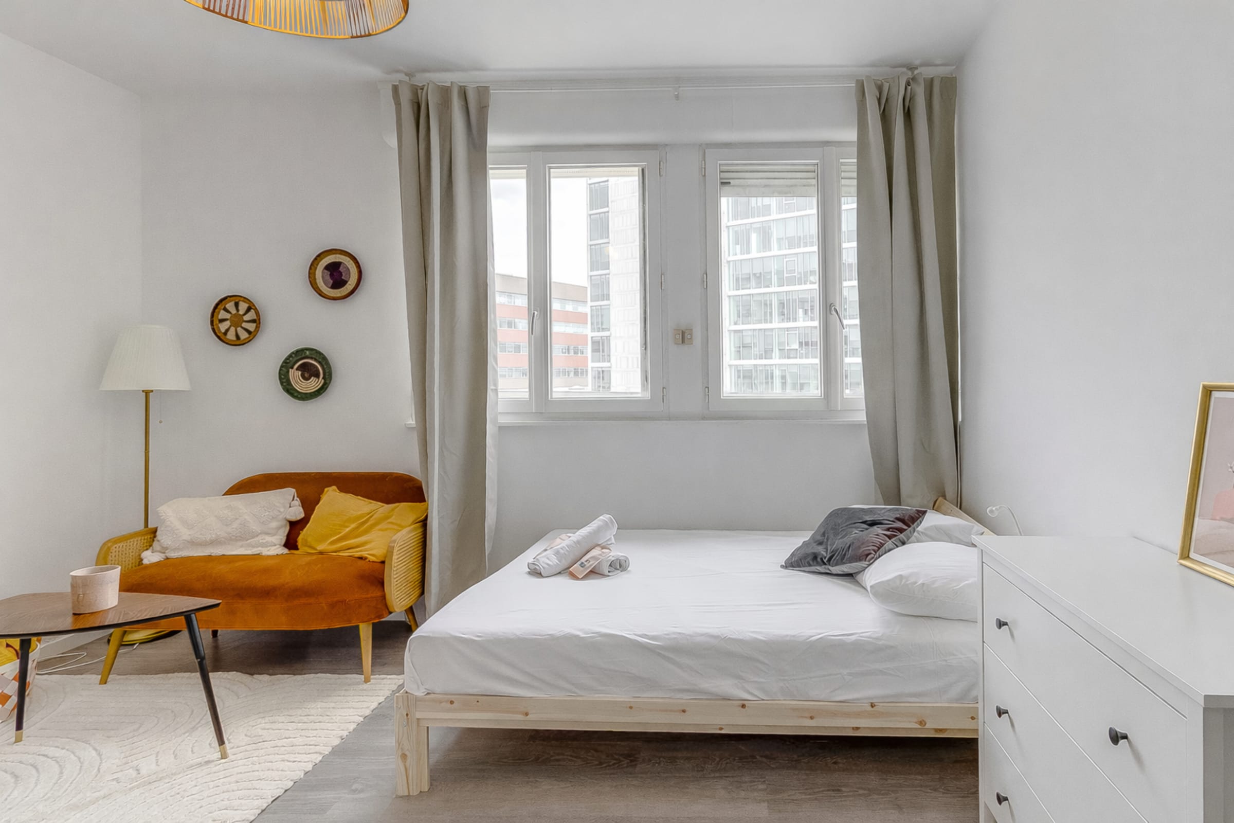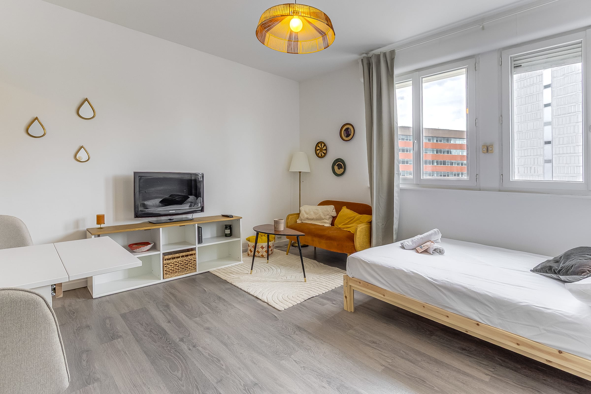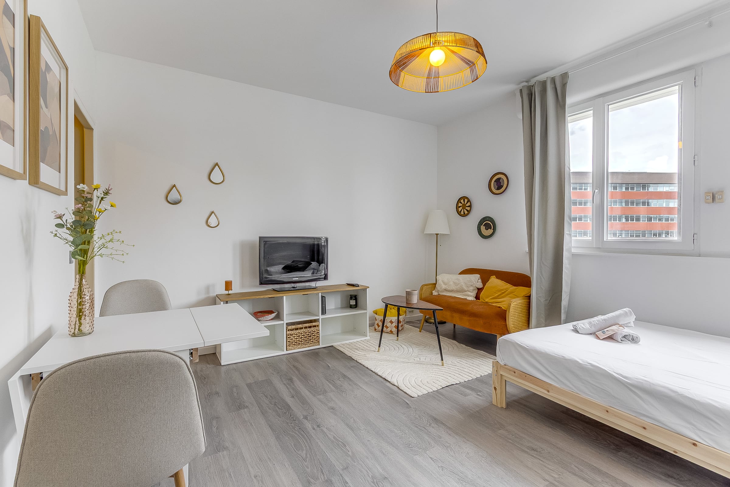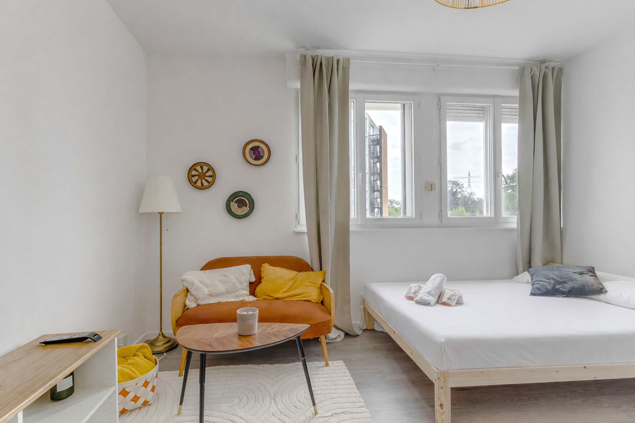 Le logement dispose également d’un parking privé (places réservées autour de la résidence) et offre une vue sur cour, garantissant calme et tranquillité.